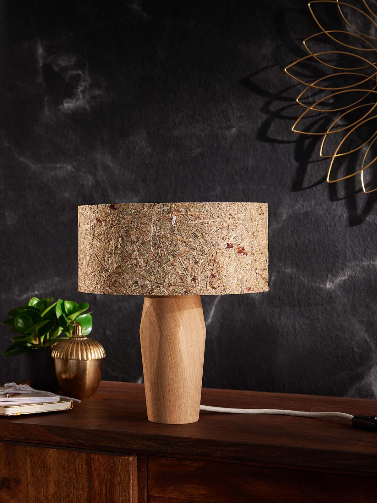 Tischleuchte, Leuchtnatur, Pura mit Lampenschirm aus Almheufurnier