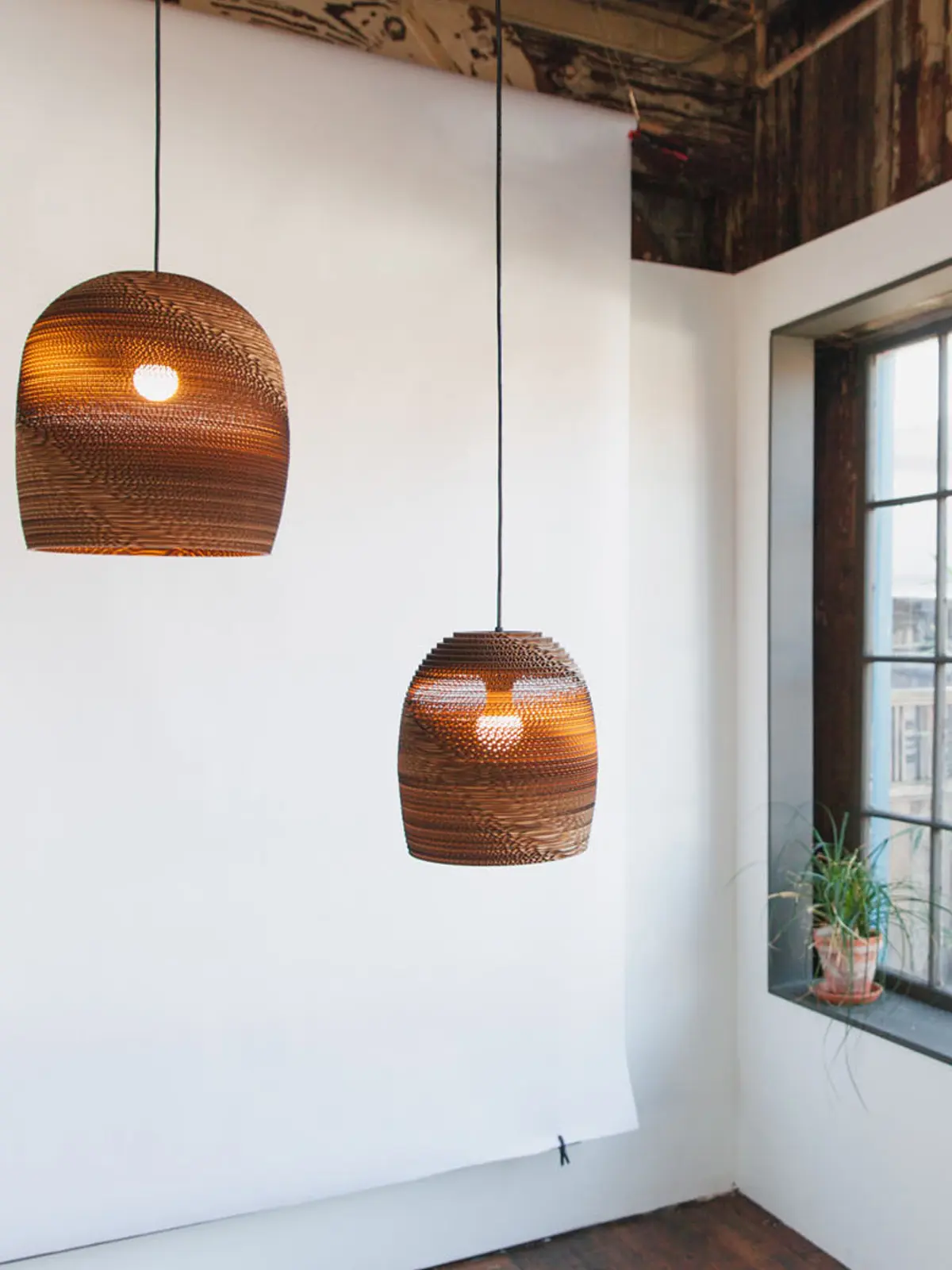 Graypants bell SCRAPLIGHTS classic entstehen aus recyceltem Karton in Handarbeit.