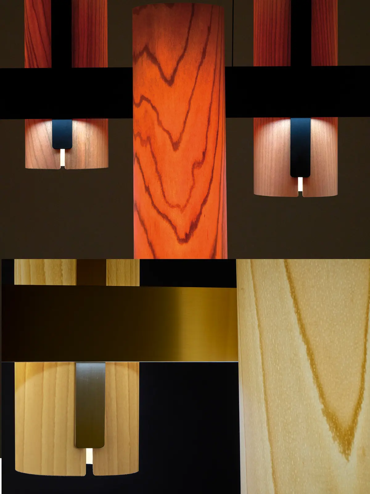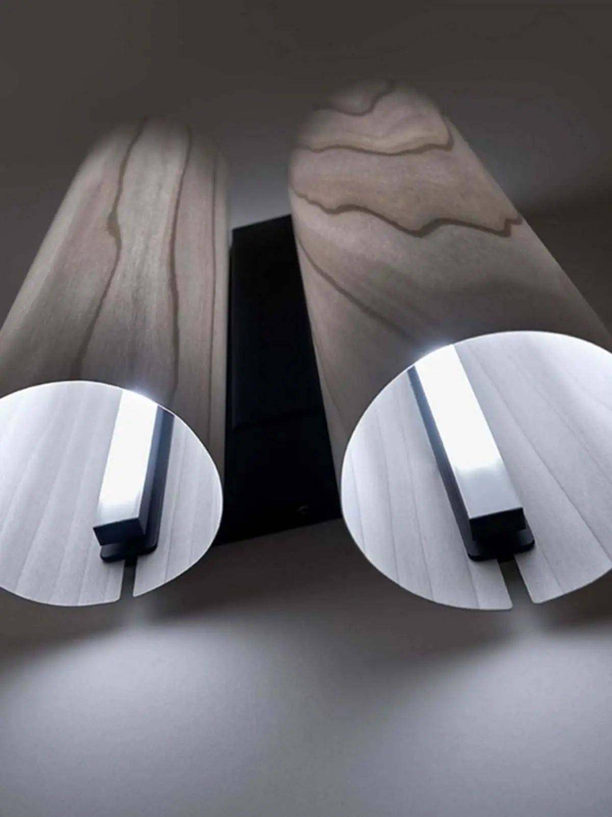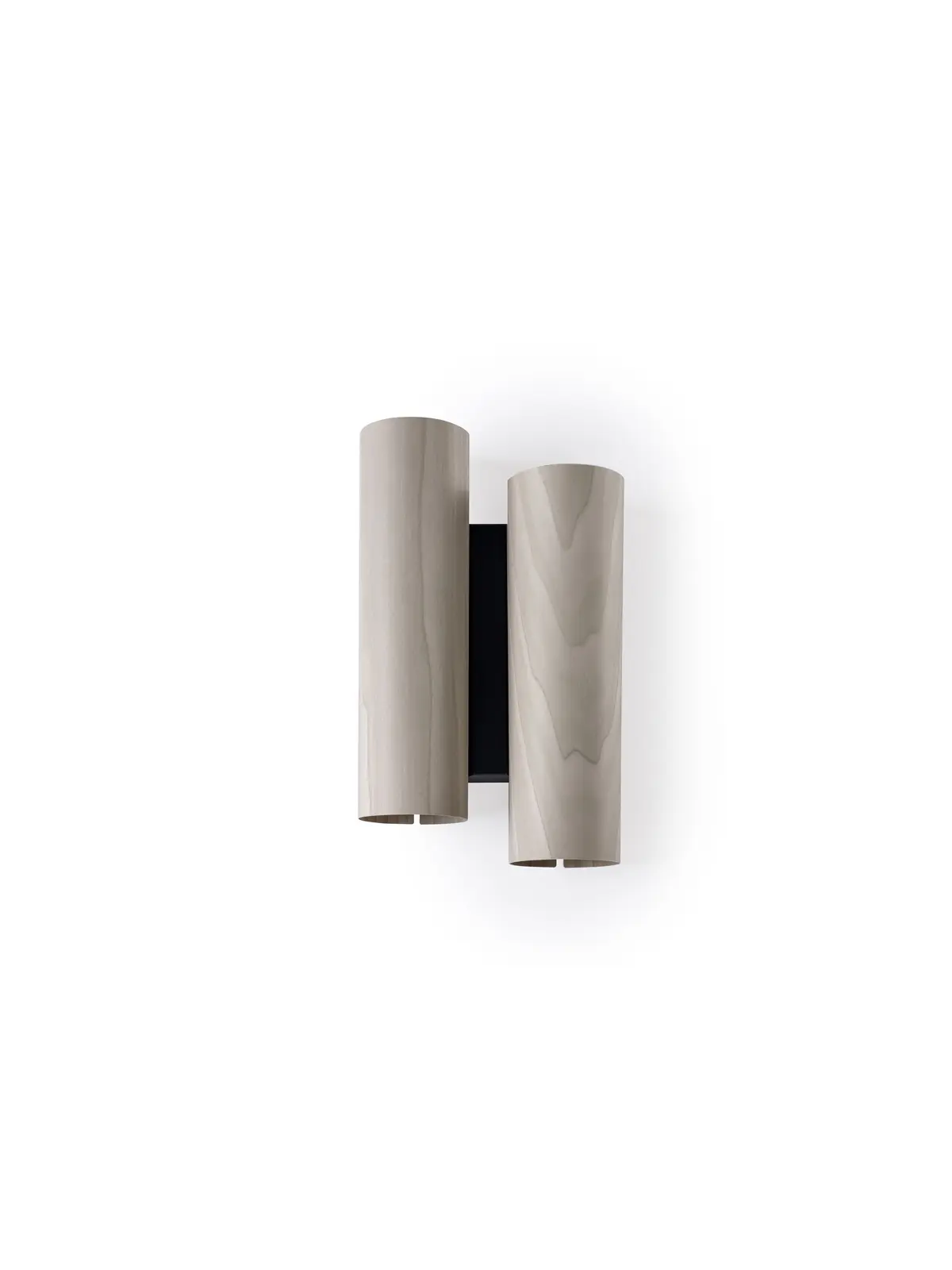 Eine rechteckige Metallplatte dient zunächst als Wandhalterung. Für diese Basis kann man je nach Geschmack aus verschiedenen Farben wählen. Die Lampenschirme der Black Note A bestehen aus FSC zertifiziertem Furnierholz. Das biegsame Furnier formt hier einen Zylinder, der oben und unten geöffnet ist. Dadurch strahlen sie direktes Licht in zwei Richtungen ab. Zusätzlich dringt diffuses Licht durch das Material. Dies betont die natürliche Schönheit des Holzes.