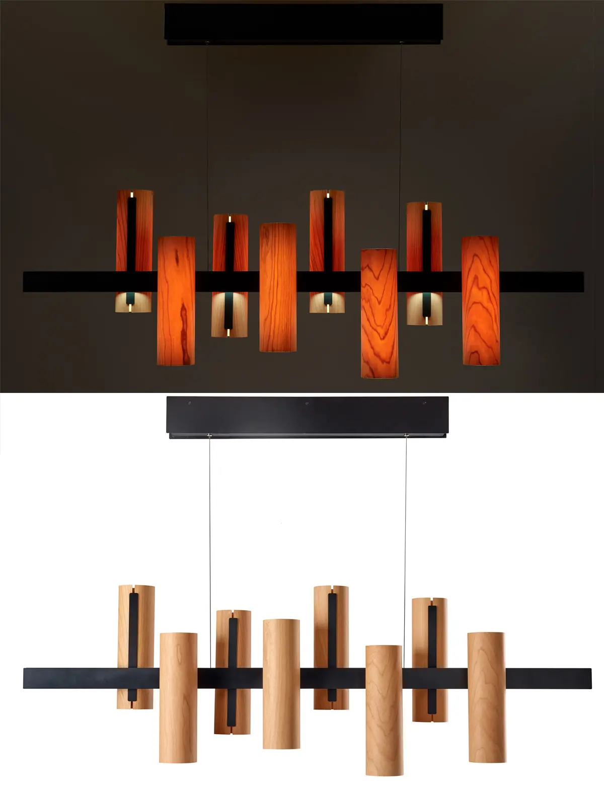 Lieferung: Holzleuchte in gewählter Farbvariante montiert.