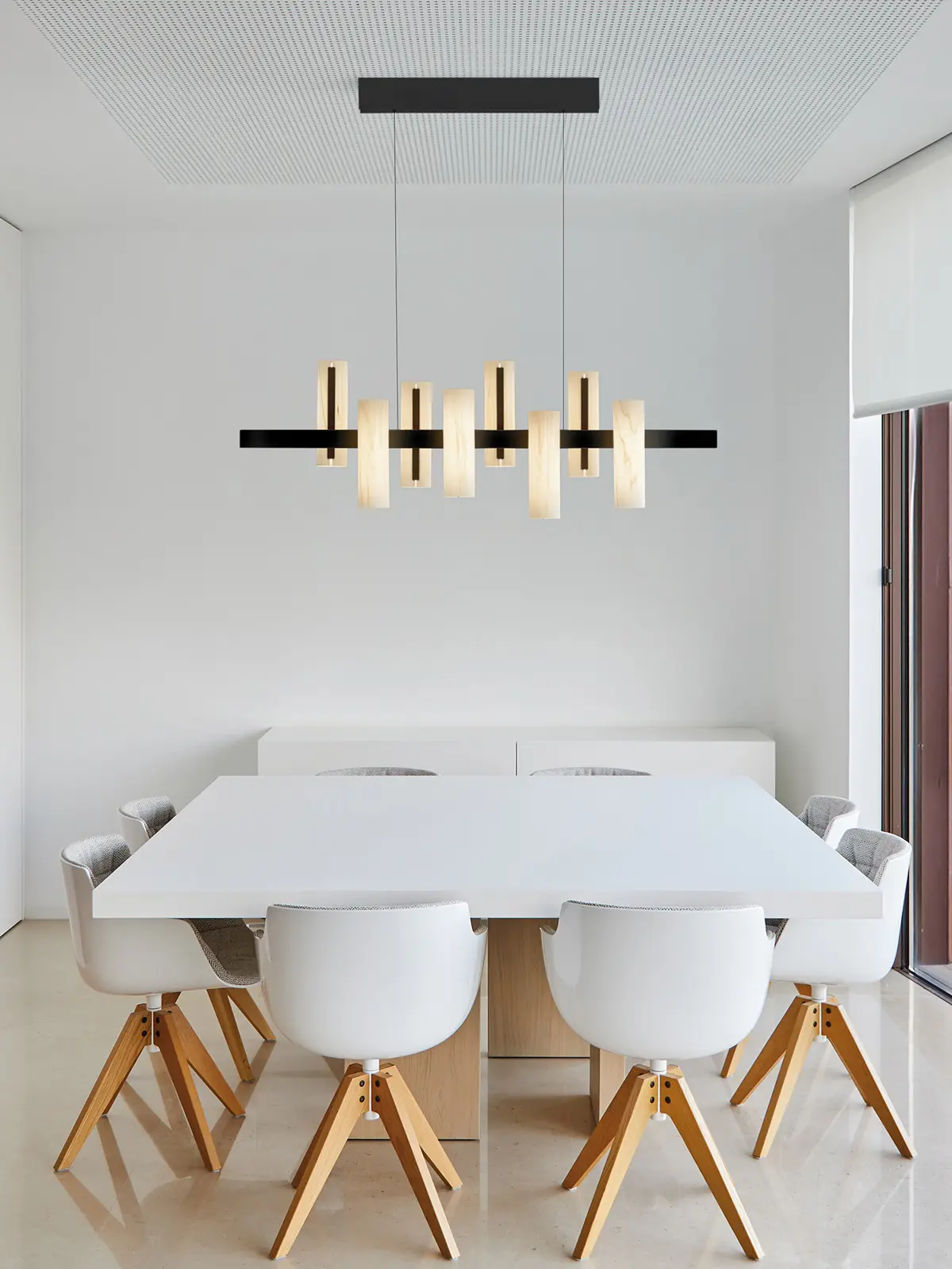 Black Note ist ein rhythmisches Licht. Für den Entwurf dieser Leuchtenserie ließ sich Designer Ramón Esteve von den Tasten des Klaviers inspirieren. So entstand eine Serie von mehrflammigen Leuchten in unterschiedlichen Anordnungen. Eine LZF Lichtsymphonie!