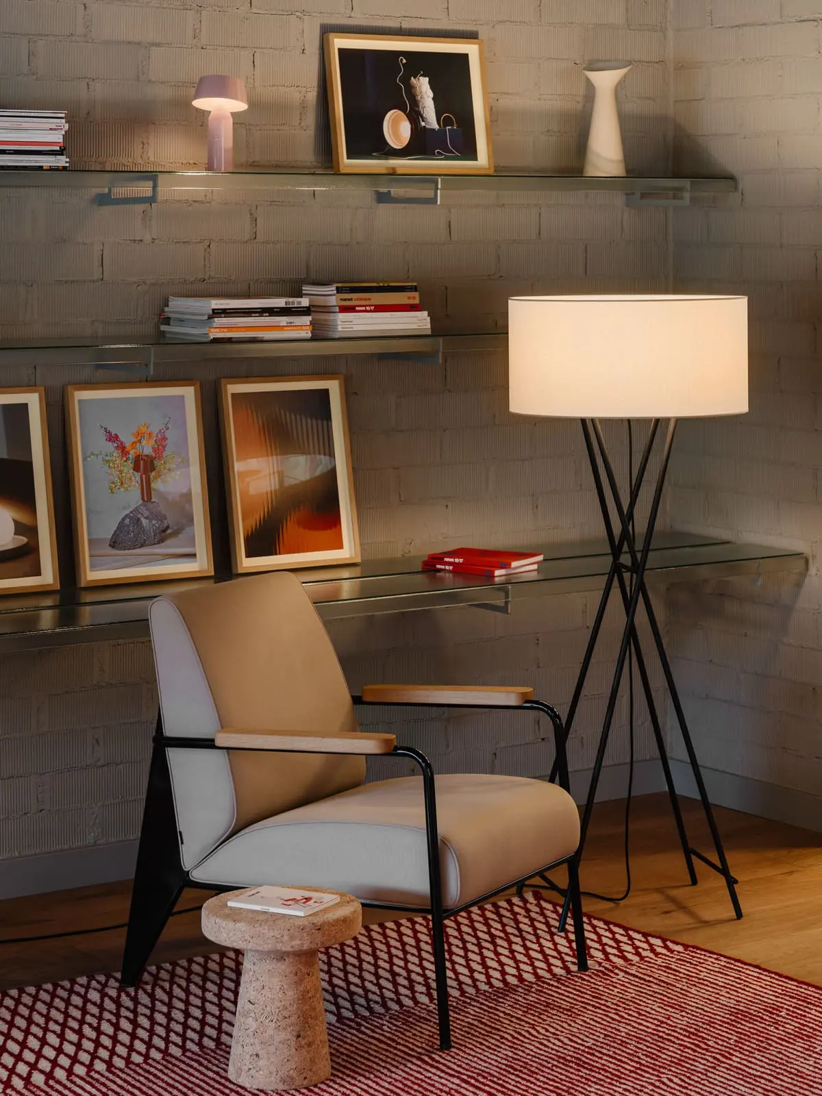 Diese spanische Designerleuchte ist stabil und hochwertig verarbeitet. Dies garantiert lange Freude mit dieser Stehlampe. Sie kommt in Eingangsbereichen hervorragend zur Geltung. Die Designerleuchte ist ebenfalls bestens als sekundäre Lichtquelle im Raum geeignet. Mit einer Höhe von 145 Zentimetern kann man die Bodenleuchte ebenfalls neben der Couch oder einem Sessel nutzen. Der große Lampenschirm verbreitet dabei viel blendfreies Licht. Diese klassische und zeitlose Marset Lampe passt zu verschiedensten Einrichtungsstilen und lässt sich ideal mit den weiteren Designlampen des spanischen Herstellers kombinieren.