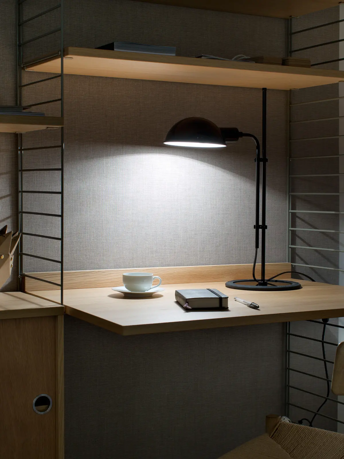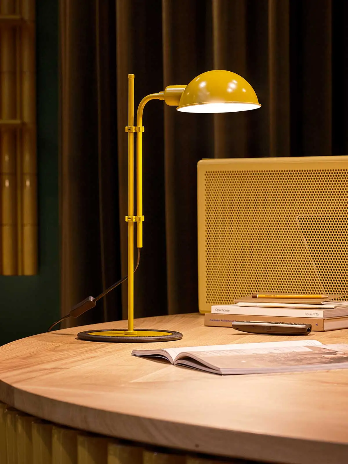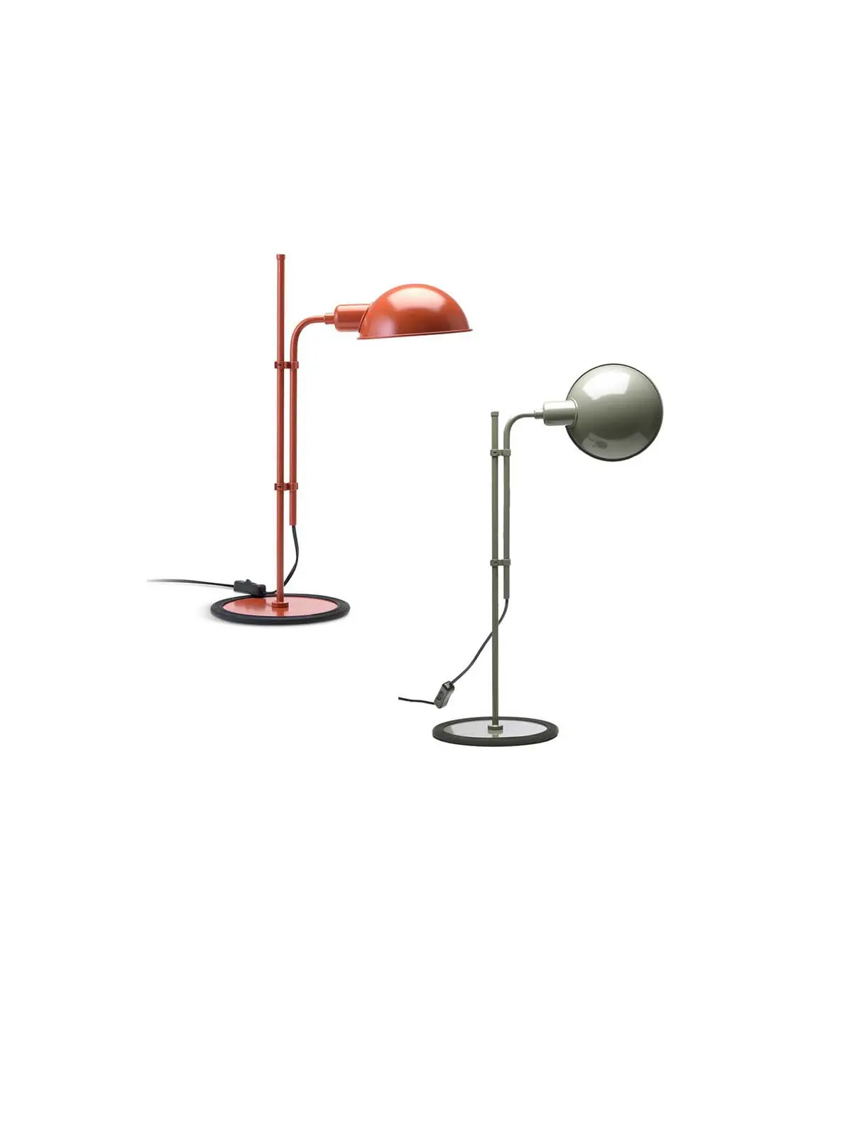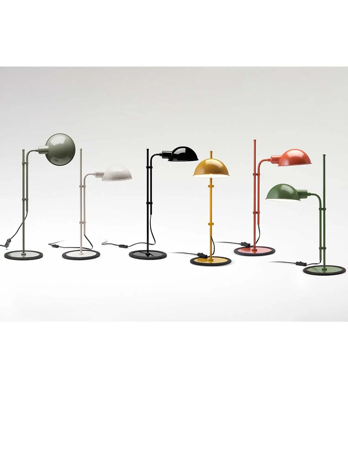 Wie ihr Name andeutet, ist die Lampe in der Höhe verstellbar; durch einen Mechanismus mit zwei Klammern kann sie optimal an die Lichtbedürfnisse angepasst werden. Zudem kann ihr Schirm gedreht werden. Fuß und Gestell sind aus lackiertem Eisen, der Lampenschirm aus lackiertem Aluminium. Durch ein umlaufendes Gummi am Leuchtenfuß wird die Stabilität erhöht. Durch dieses Detail wird zudem der Boden geschont. Funiculí S eignet sich hervorragend als Leselicht. Sie sieht gut auf dem Beistelltisch neben dem Sofa oder im Schlafzimmer neben dem Bett aus. Passt aber auch ins Arbeits- oder Jugenzimmer. Der Designklassiker ist in vier Farben – Moosgrau, Cremeweiß und Schwarz sowie Terrakkotta, Grün und Senf – erhältlich und kann sie sich so flexibel in unterschiedliche Stile integrieren. Gelungene Kombinationen entstehen zudem mit der Stehleuchte oder Wandleuchte.