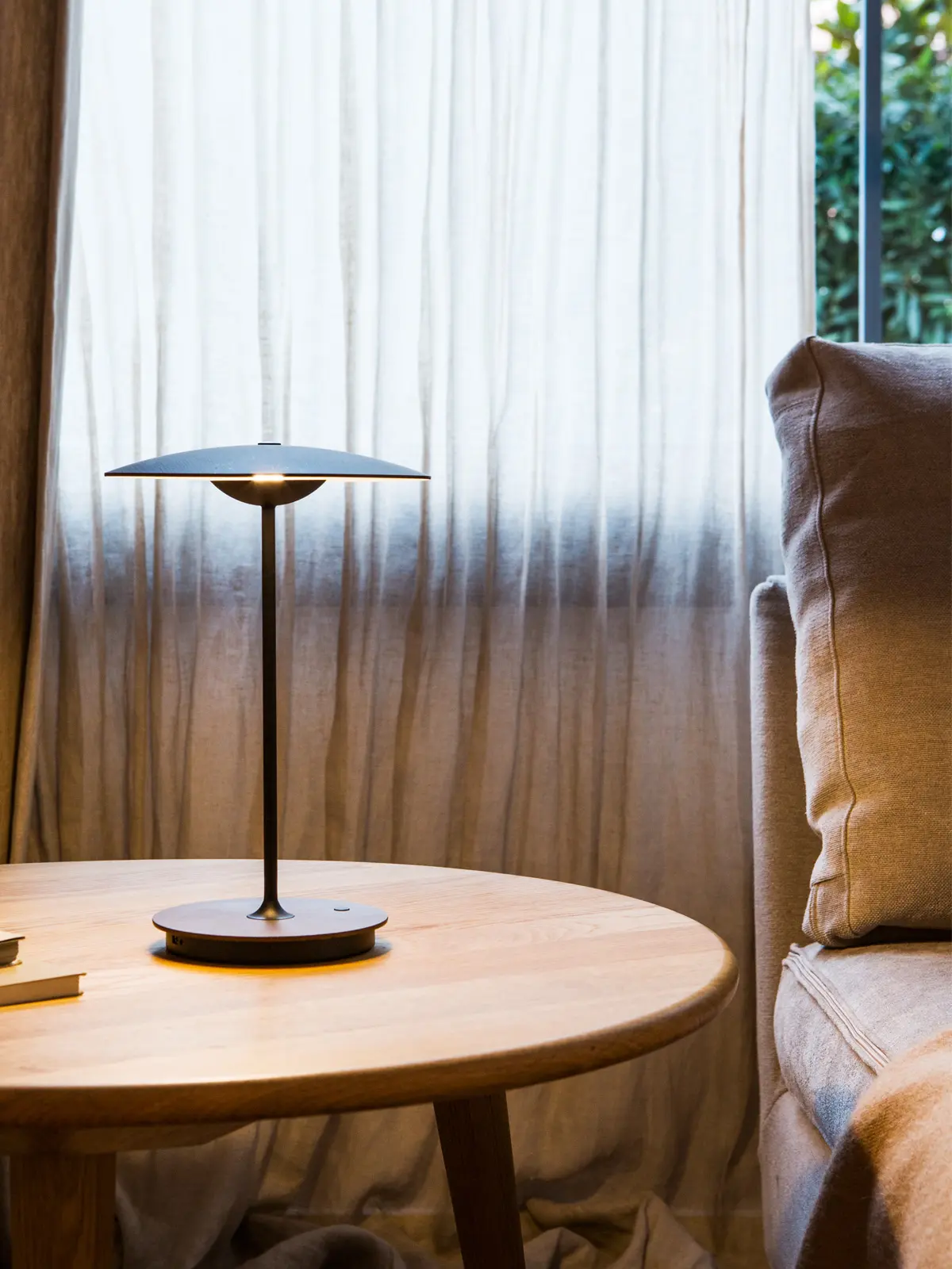 Die portable Tischleuchte Ginger 20 M von Marset kombiniert die ikonische Form dieser Lampenfamilie mit einer aufladbaren Lithium Batterie. Somit beleuchtet diese Tischlampe auch dunkelste Ecken. Und das eben ganz ohne Kabel!