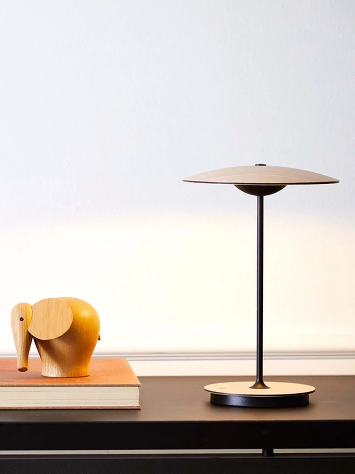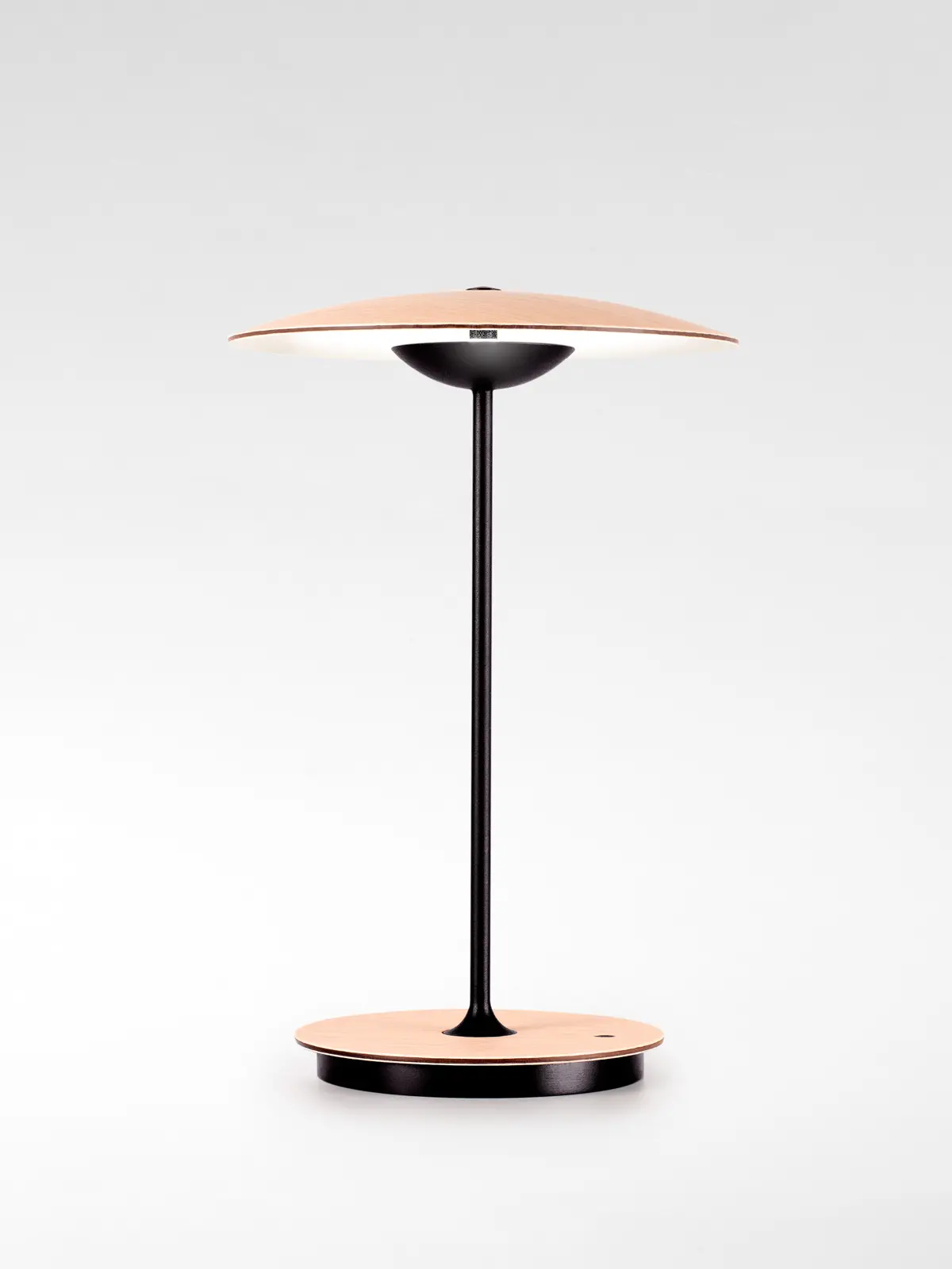 Joan Gaspar schuf mit der Ginger Serie eine filigrane und formschöne Lampenfamilie. Dem 4 mm starken Schirm aus Holz oder Messing gegenüber befindet sich eine Aluminiumschale, die gekonnt das Leuchtmittel verdeckt und gleichzeitig auch als Kühlkörper dient. Im Inneren des runden Lampenfußes befindet sich dann die Batterie. Diese leuchtet bei höchster Leistung fünf Stunden. Zudem ist diese Tischlampe ebenfalls in drei Stufen dimmbar. Marset präsentiert uns hier eine portable Leuchte, die jedoch beim Design keine Abstriche macht. Hochwertige Verarbeitung und eine warme Optik machen diese aufladbare Lampe zu etwas ganz Besonderem. Und wer möchte schon bei Form und Material Abstriche machen?