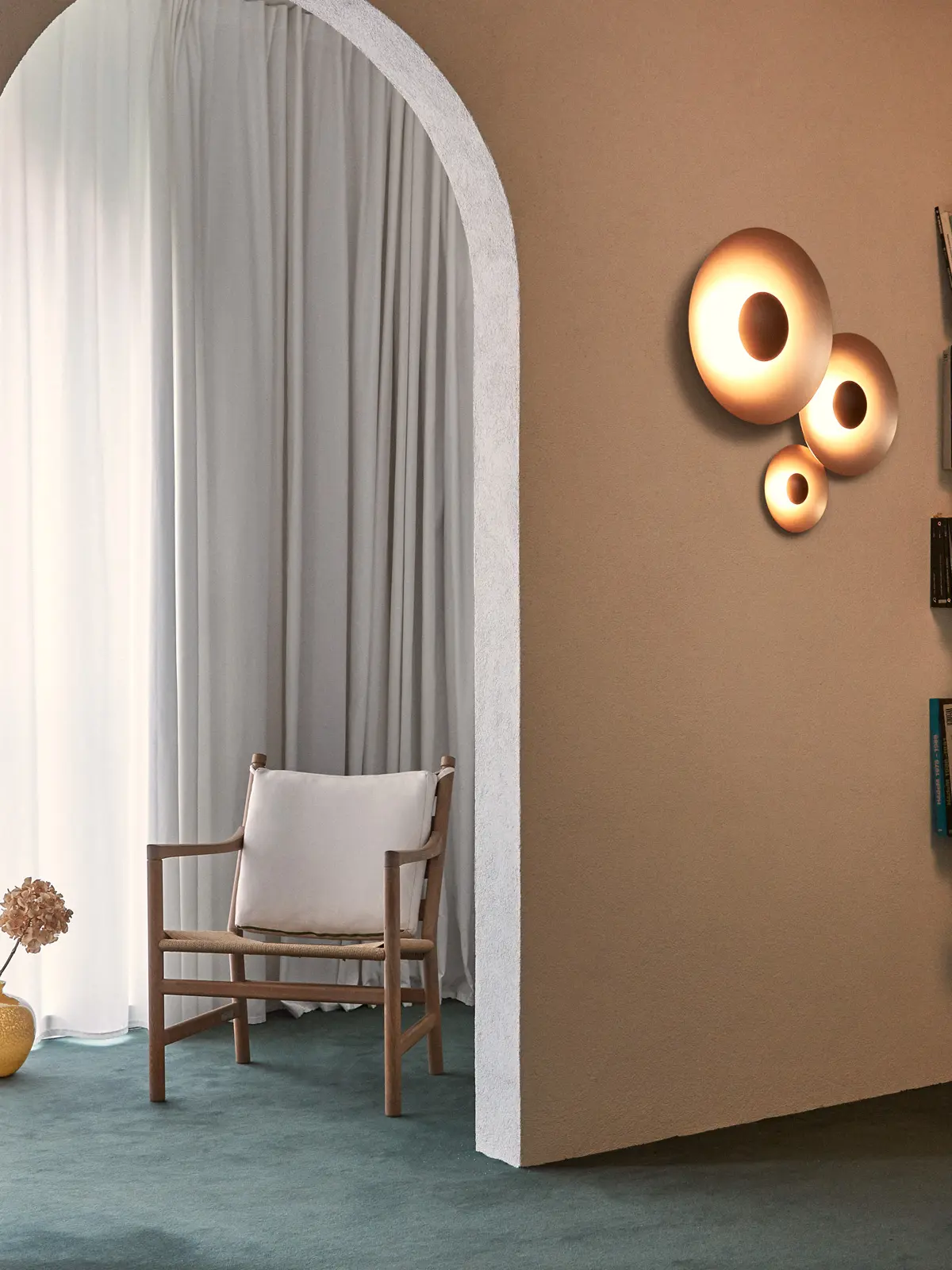 Wandleuchte Ginger C ist die neueste Ergänzung der Marset Ginger Lampenfamilie von Joan Gasper. Dezent thront sie an der Wand und sorgt für harmonisches indirektes Licht.
