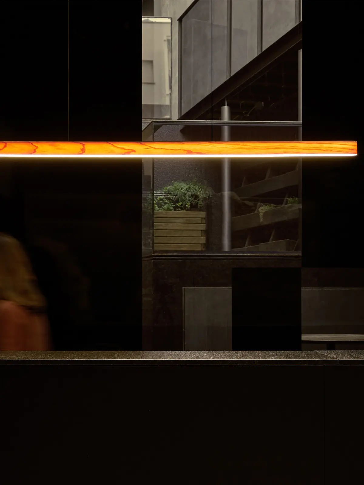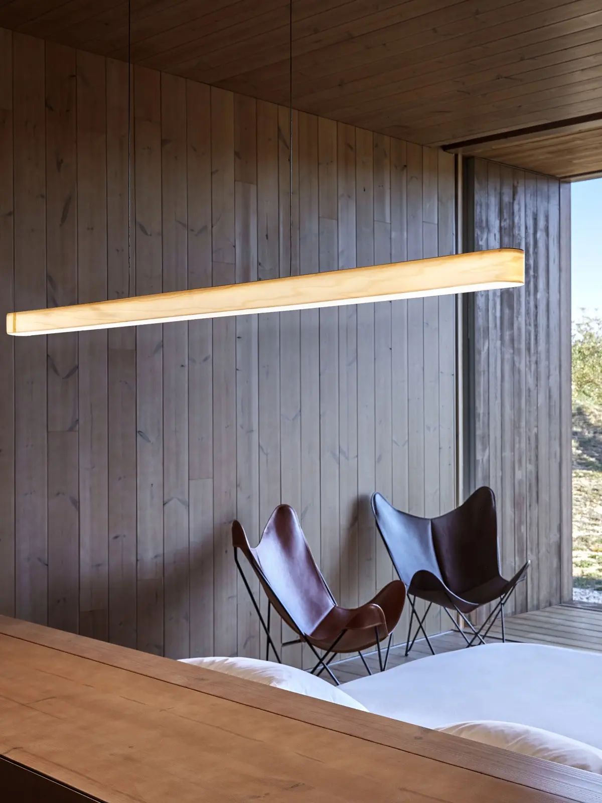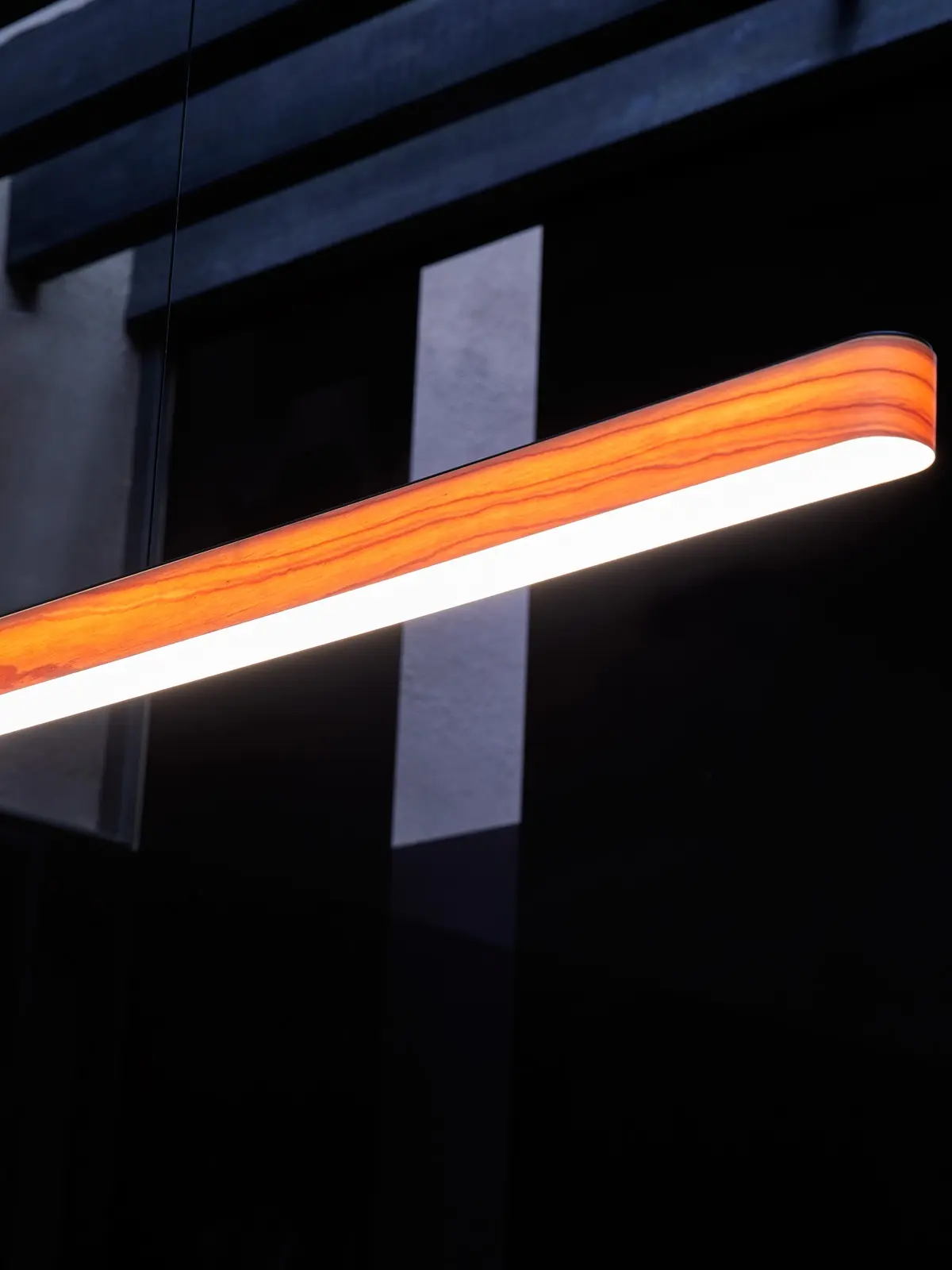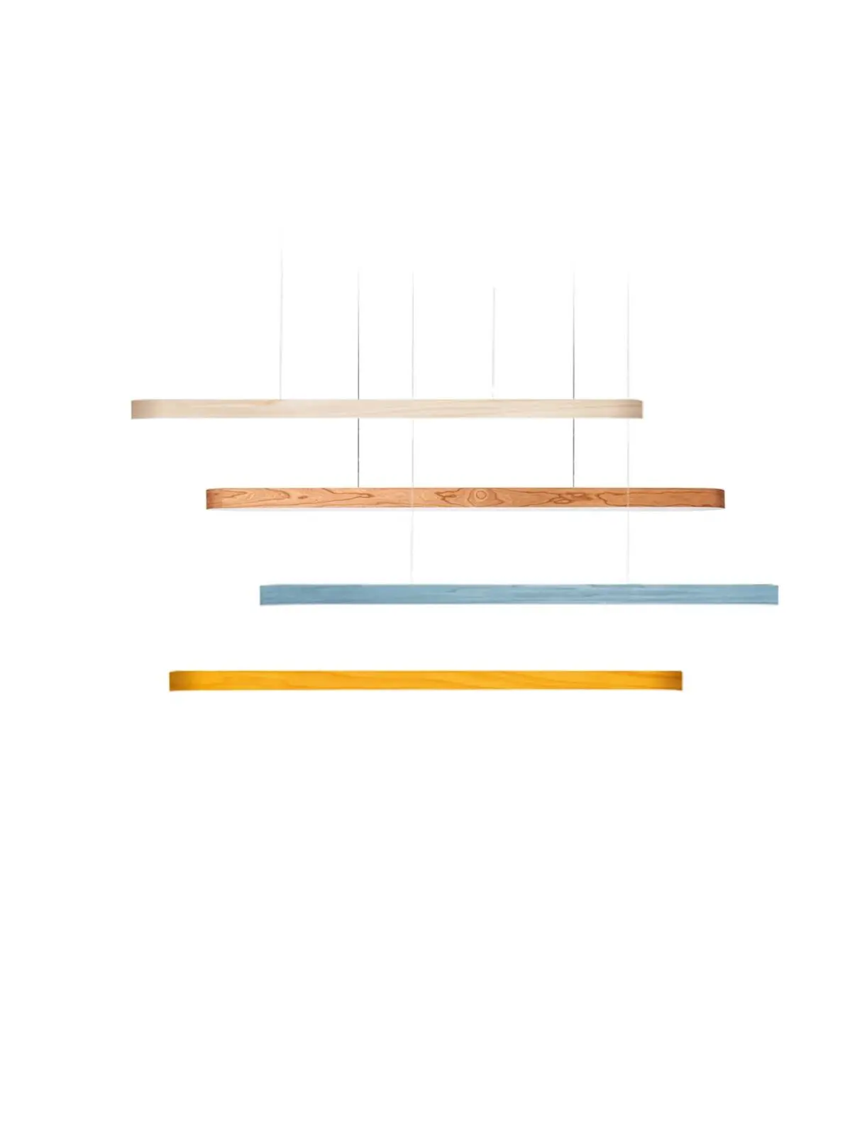Die LZF I-Line Short ist eine ultraschlanke, waagerechte Pendelleuchte. Die Designerleuchte kombiniert feines Holzfurnier in 12 Farben mit hellem Acryl. Ihre architektonischen Formen sind dabei ideal, um Tische zu beleuchten.