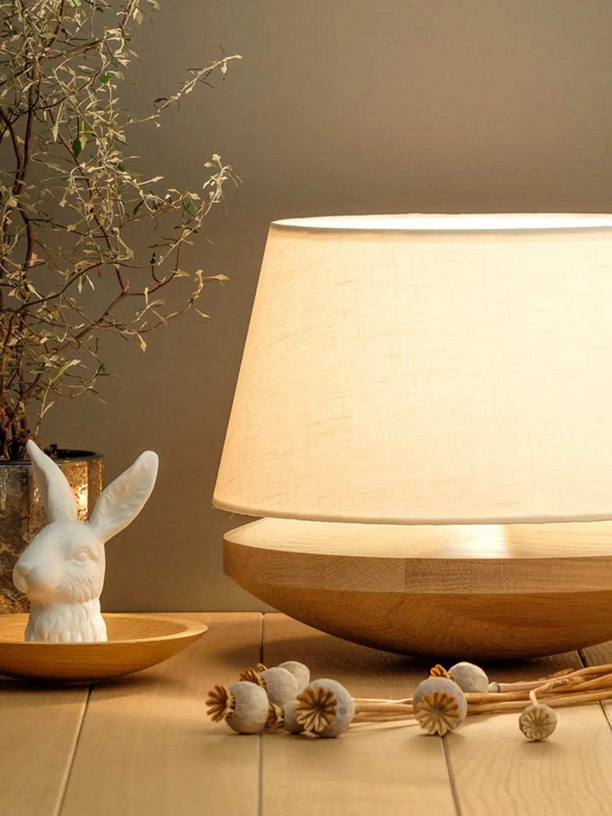 Mit einem Fuß aus ehrwürdiger Eiche und einem Schirm aus feinstem Leinen, steht Kjell ebenso für Natürlichkeit wie für Hochwertigkeit. Ein leuchtendes Juwel, das Sie rundum glücklich machen wird! Ausgestattet mit einer transparenten Steckerzuleitung und Handdimmer lässt sich die klassische E27 Fassung mit jedem Leuchtmittel Ihrer Wahl bis 70 Watt bestücken. So kann man das Licht dieser Designerlampe immer wieder neu anpassen.