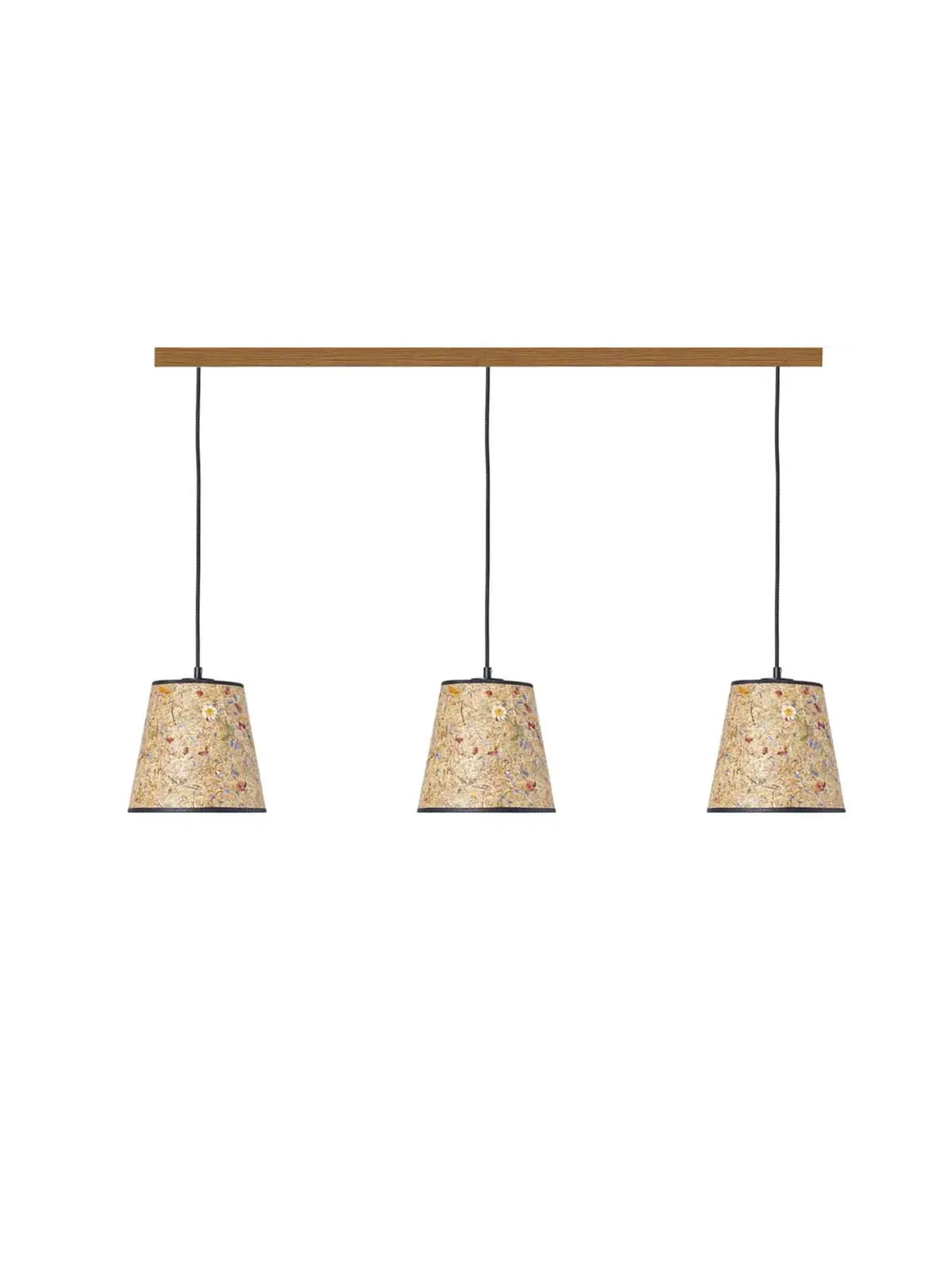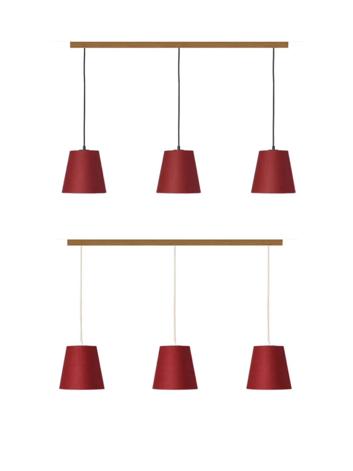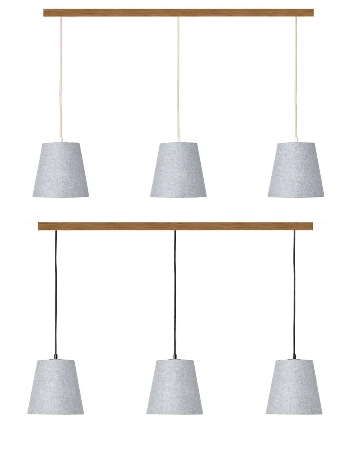 LeuchtNatur Konus Trio kombiniert drei Konus Lampenschirme an einer praktischen Aufhängung. Mit einer Länge von etwa 140 Zentimetern ist diese mehrflammige Pendelleuchte ideal, um Tische zu beleuchten.