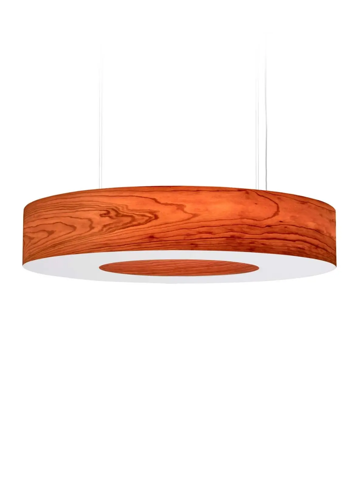 Der Ring der Saturnia SG LED symbolisiert als Doppelacht die Unendlichkeit des Universums und gleichzeitig auch den 6. Planeten unseres Sonnensystems. Hiermit gelang es dem Designer Oskar Cerezo mit klaren Formen und simplen Materialien einen außergewöhnlichen und zeitlosen Blickfang zu kreieren. Doch die Hängelampe überzeugt nicht nur durch ihre Form sondern auch durch ihre Funktion. Durch das helle Plexiglas strahlt helles und warmes Licht in den Raum. Zusätzlich dringt ebenfalls Helligkeit durch das Furnierholz und betont dadurch die schöne Holzmaserung. Und das LED Modul garantiert darüber hinaus 40000 Stunden Licht.