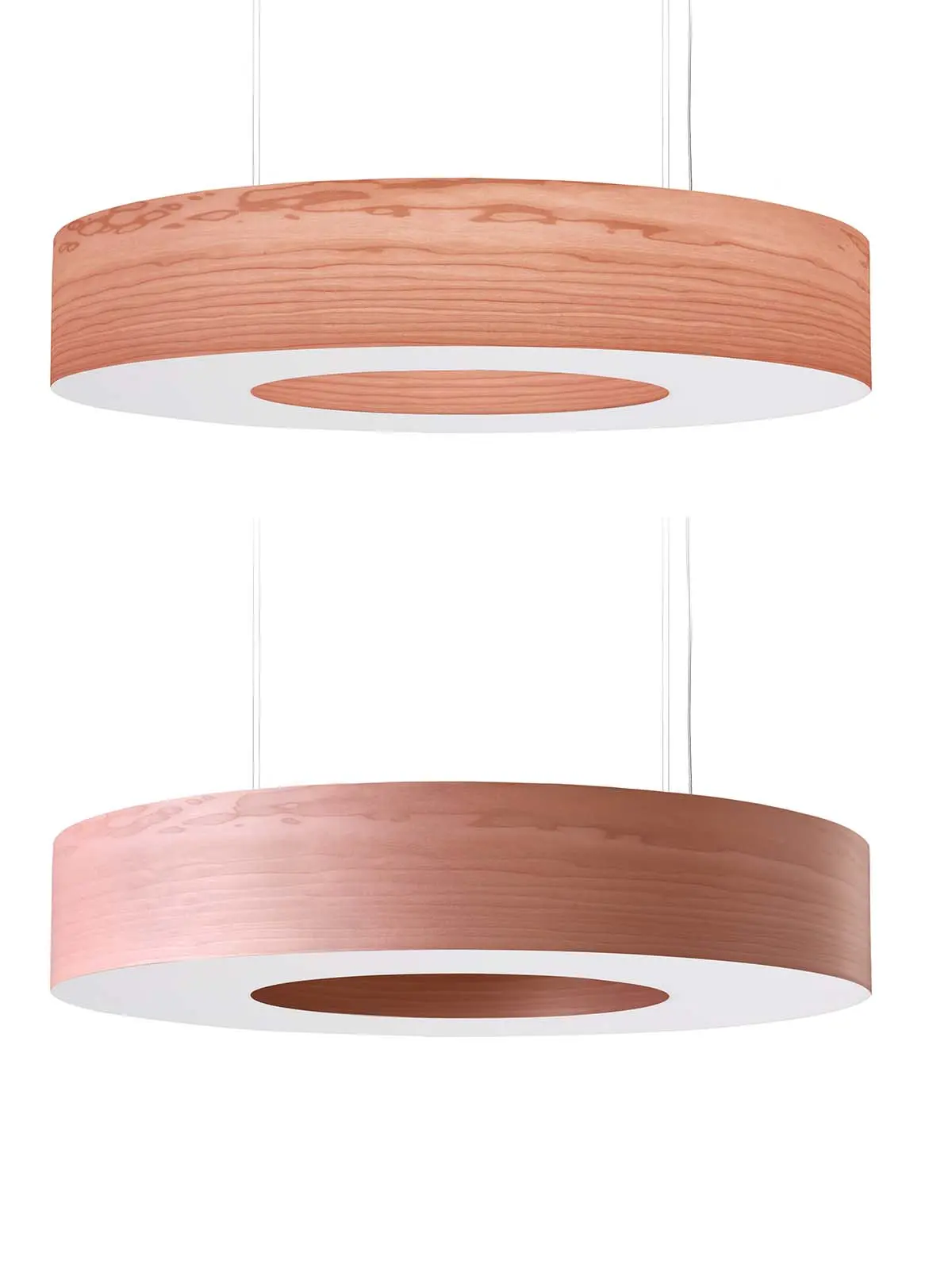 Die Furnierholzleuchte Saturnia SG LED ist die größte Pendelleuchte dieser LZF Lampenfamilie. Als kosmisches Duo präsentieren so LZF Gea und Saturnia die Erde und das Weltall.