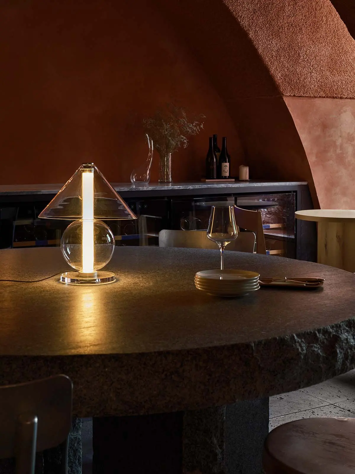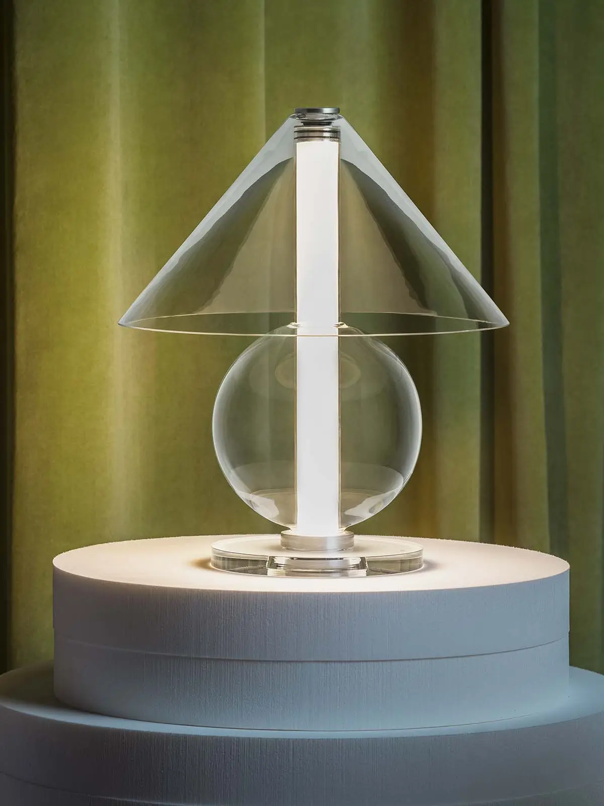 Tischleuchte Fragile von Marset ist Ausdruck von zeitlosem Design. Die Glasleuchte besticht mit ihren geometrischen Formen und hellem Licht.