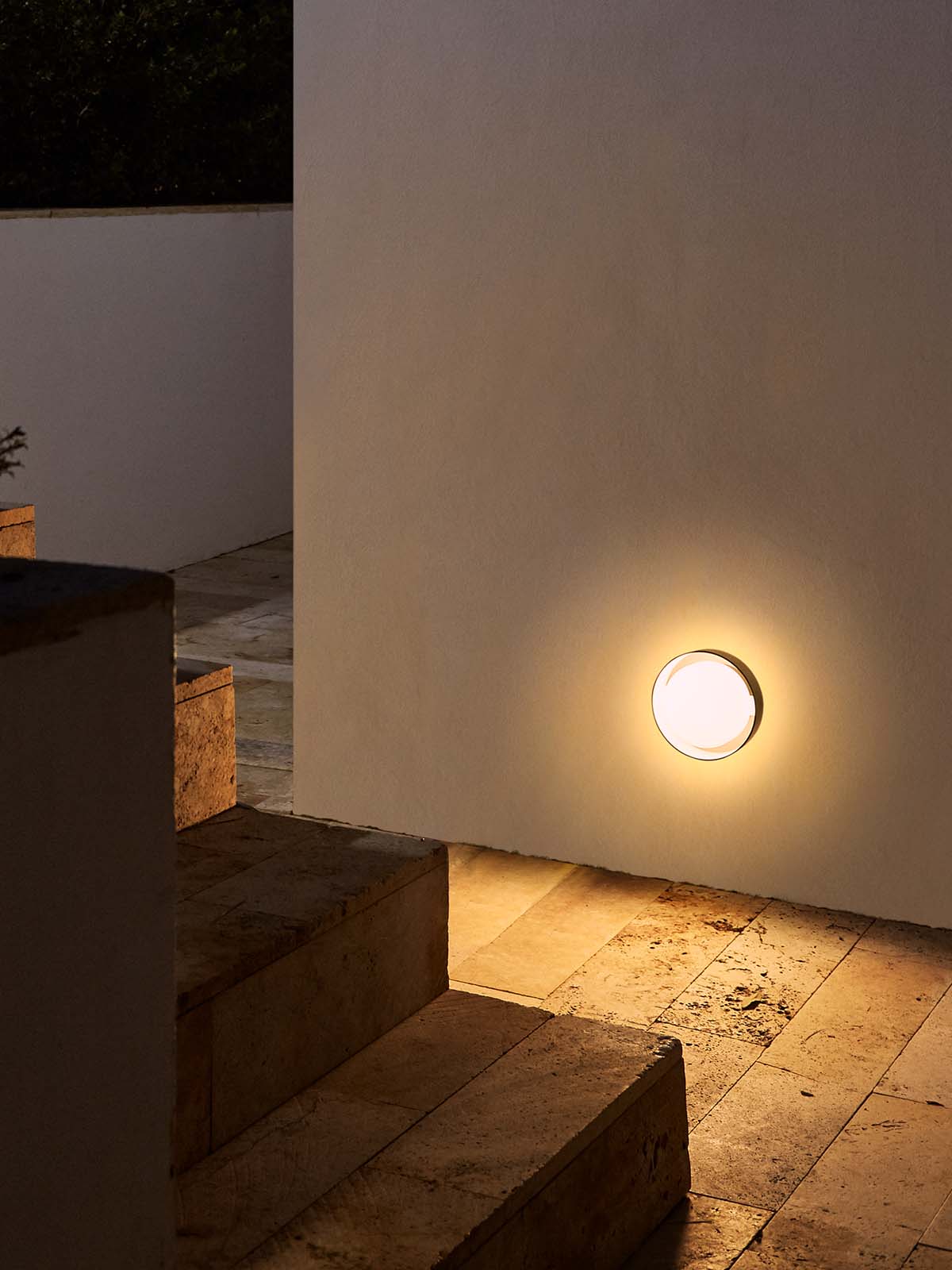 Die runde Wandleuchte bietet stilsichere und zeitlose Beleuchtung. Ursprünglich war diese Marset Designerlampe für den Innenbereich gedacht. Aufgrund der neuen Schutzklasse kann Plaff-On! IP54 nun auch in Nassbereichen oder Außenbereichen zum Einsatz kommen.