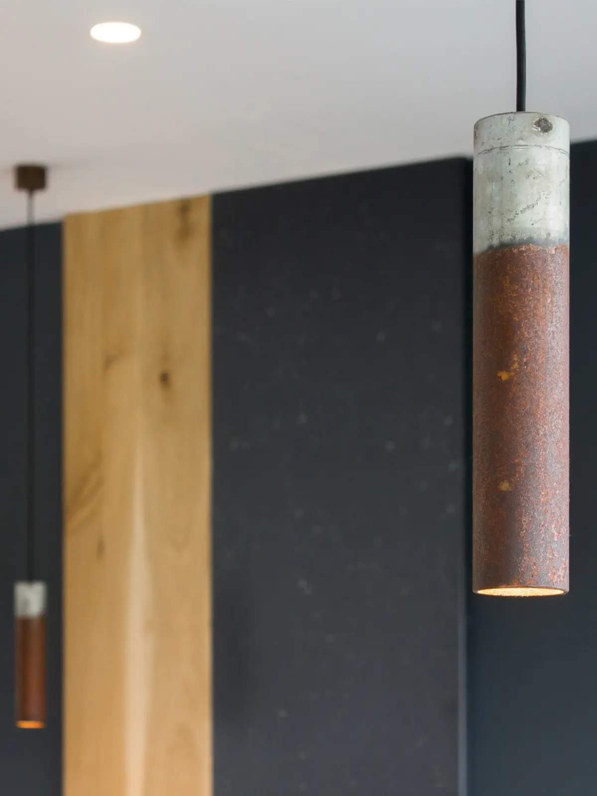 Dort entstehen ebenfalls die Roest Pendelleuchten in Handarbeit. Das Design dieser Leuchten basiert auf absoluter Einfachheit. Und so bildet nur ein Zylinder den Lampenschirm. Das Licht fällt dann wie bei einem Spotlight nach unten ab. Abgerundet ist dieser Entwurf mit einem Textilkabel sowie einer LED Fassung.