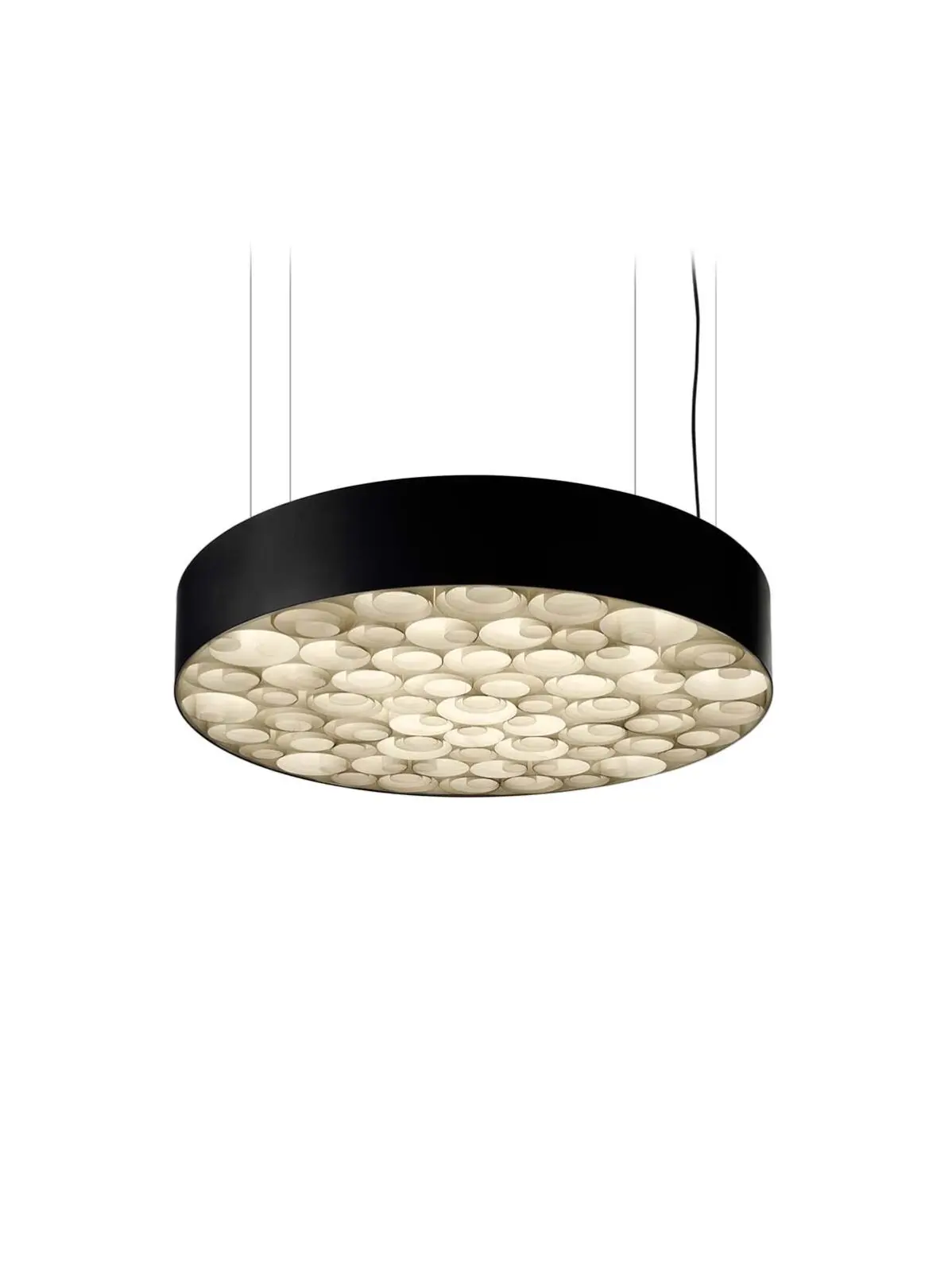 Abstrakte Formenmuster und überraschende optische Effekte, all dies waren Stärken der OP Art und treffen ebenso auf Spiro Black zu. Diese Leuchte ist eine gelungene Neuinterpretation der Strömung der 60er Jahre.