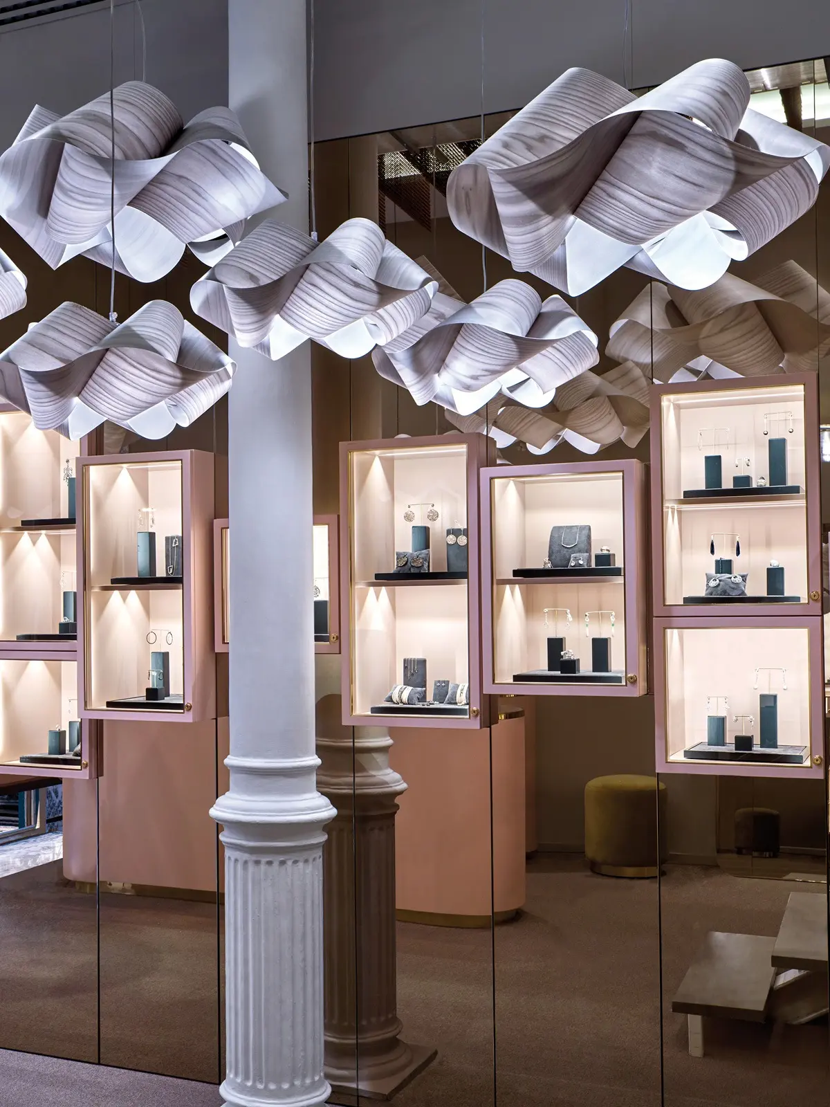 Bei LZF wird das Furnierholz speziell oberfächenbehandelt; durch dieses umweltfreundliche Verfahren wird das feine Holz formbar und stabiler. Seine natürliche Maserung und die subtile Lichtdurchlässigkeit bleiben dabei erhalten. Das von LZF verarbeitete Holz ist FSC zertifiziert. Swirl SG wird in 11 verschiedenen Holzfarben gefertigt und eröffnet dadurch individuelle Gestaltungsspielräume.