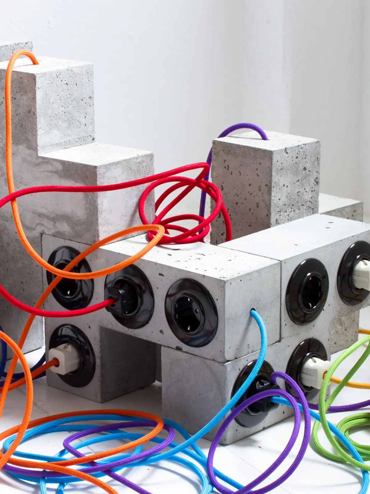 Ein Tetriplug, zwei Tetriplugs … Bei unseren modernen Verlängerungskabeln aus Beton muss sich niemand nur für eine Form entscheiden. Denn das Prinzip der Verlängerungsschnüre basiert auf dem Tetris-Prinzip. Und so kommen hier ganze sieben Formen zum Einsatz. Wie es bei Tetris eben auch üblich ist, kann man daher alle Verlängerungen stapeln.