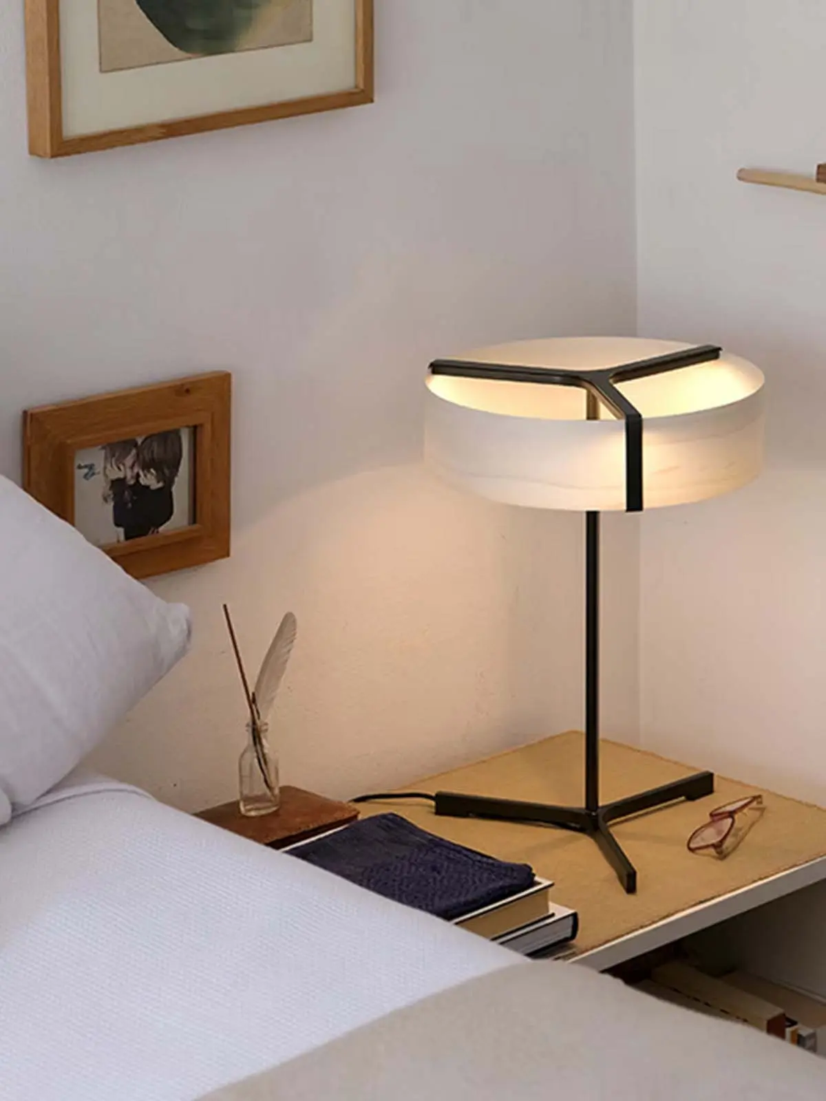 Zunächst bilden drei Streben aus Metall die Basis der Thesis T Tischlampe. Dann reckt sich ein gleichfarbiger Stab empor. Der trommelförmige Lampenschirm wird dabei deutlich sichtbar von drei Streben getragen. Dies greift die Form des Lampenfußes wieder auf. Dadurch wirkt diese Designerleuchte äußerst ausbalanciert. Die Sprossen des Ständers tragen ebenfalls jeweils ein LED Leuchtmittel. Also strahlen gleich drei Leuchtmittel Licht ab. Dadurch ist diese Leuchte hervorragend als Leselicht geeignet. Das Licht wird nach unten abstrahlt. Gleichzeitig dringt auch gedämpftes Licht durch den Schirm. LZF Thesis T ist eine elegante Designerleuchte im minimalen Design. Diese unaufgeregte Tischleuchte kommt völlig ohne Schnickschnack aus. Und somit eignet sie sich ideal für ruhige Orte, wie eine Leseecke. Doch auch im Hotel oder im Büro kann diese Leuchte zum Einsatz kommen. Zudem hat man die Wahl zwischen unterschiedlichen Holzfarben und Metallfarben.
