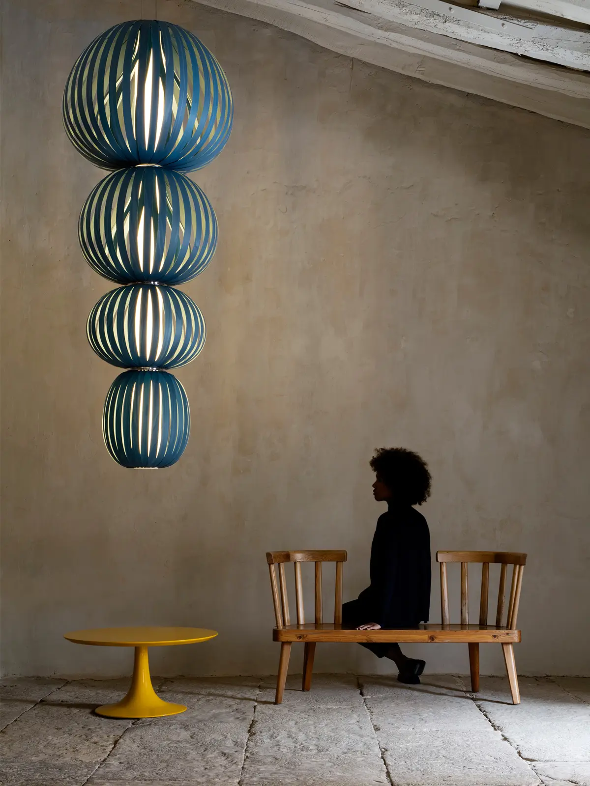 Wie ein Schutzgeist fungiert die Totem Leuchte. Sie hat eine mystische Ausstrahlung, schafft Verbindungen und erinnert an unsere natürlichen Wurzeln. Die beiden Designer Mariví Calvo und Burkhard Dämmer wurden zu ihrem Entwurf auf einem Markt in Istanbul angeregt. Totem knüpft an die dortige Atmosphäre und die Gerüche nach orientalischen Gewürzen und Tee an. Trotz ihrer klaren Formgebung hat die Holzleuchte aus weich geschwungenen Holzbändern und dem besonderen Lichteffekt auch immer etwas Geheimnisvolles an sich.