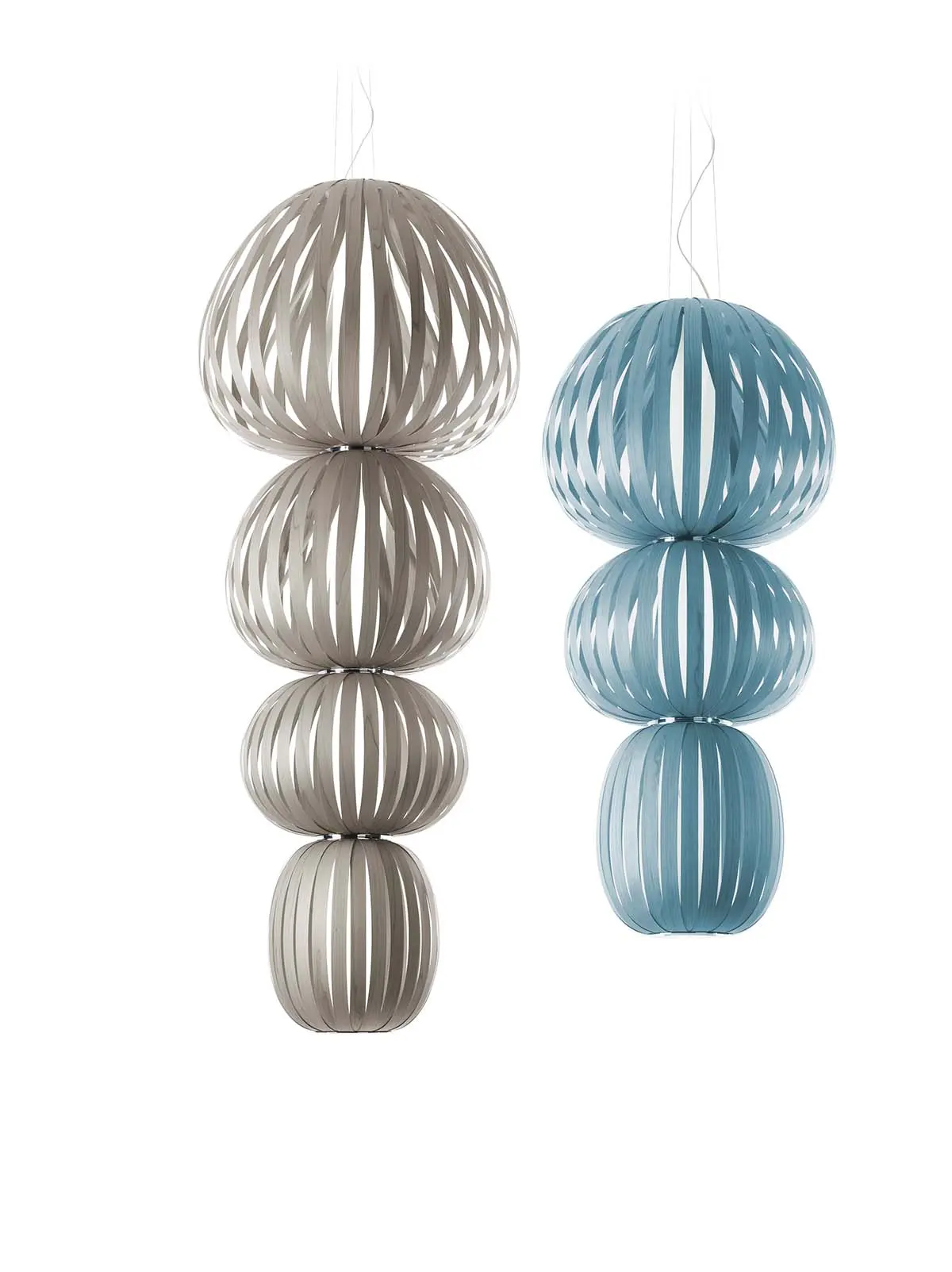Maße: Small: D: 73 cm x H: 155 cm (3 Lampenschirme) und Medium: D: 86 cm x H: 231 cm (4 Lampenschirme)